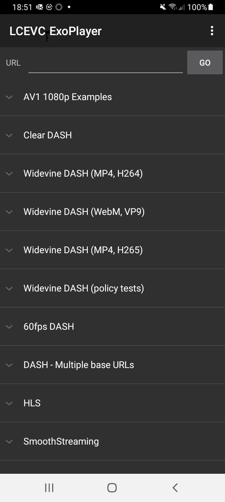 If you have been provided with the LCEVC-enabled ExoPlayer reference integration as part of your evaluation, you can use the pre-built LCEVC ExoPlayer APK to play back both local content or from a URL.