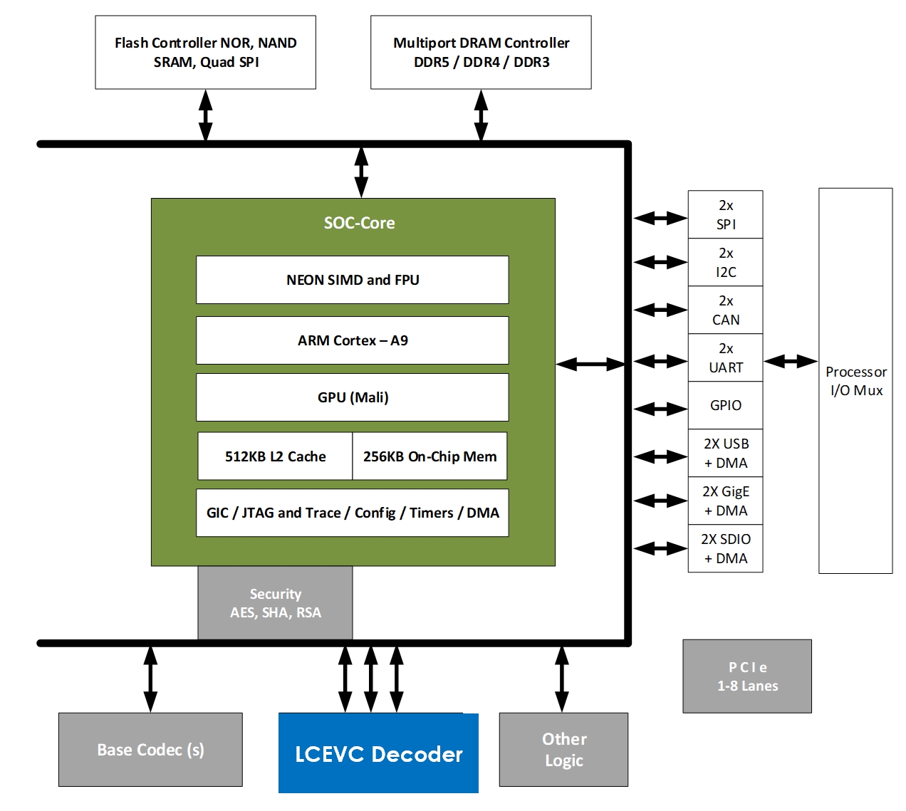 The diagram below shows the LCEVC Decoder IP inside a typical SOC implementation: