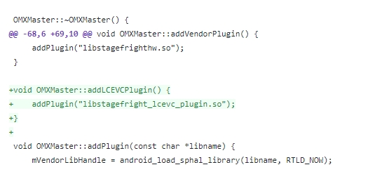 The approach for AOSP integration is via a plugin for OMXMaster named libstagefright_lcevc_plugin.so, which is loaded via OMXMaster’s API function OMXMaster::addPlugin