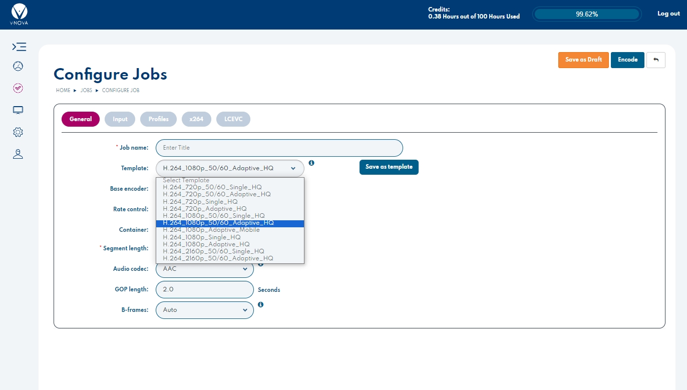 Each Template provides typical recommended parameters to encode an asset. A template contains all of the settings associated with a job except for the source specific and its title. To select a built-in Template: