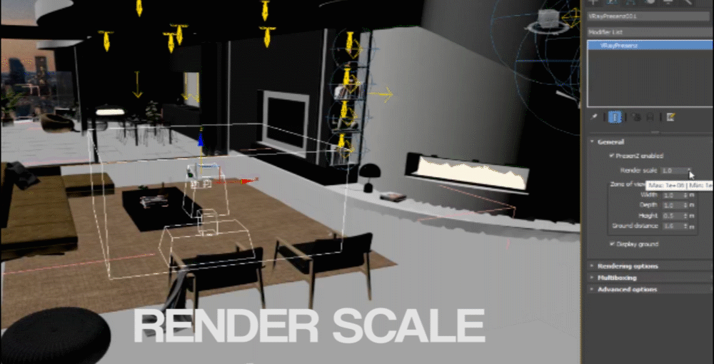 The render scale is a powerful tool, especially when you’re working with virtual scenes that were not modeled using real-world units or need to be converted to meters for the PresenZ player.
